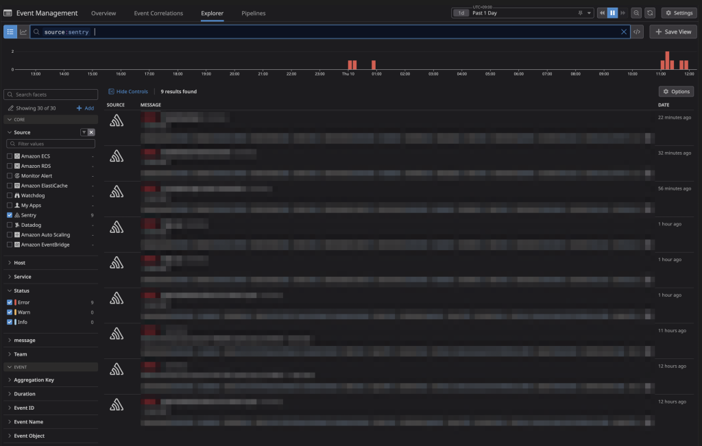 - Datadog > Events Explorer