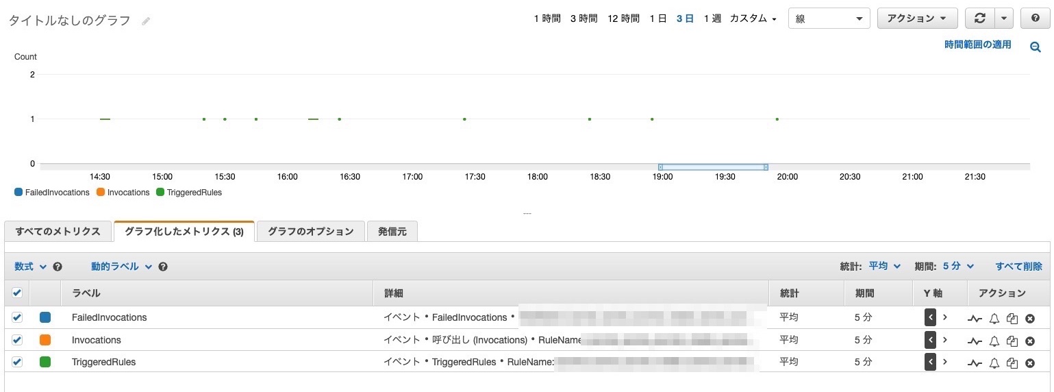 CloudWatchメトリクスから FailedInvocations が出ているはずなのでCloudTrailのイベント名で RunTask とググるとエラーログが出てるで!